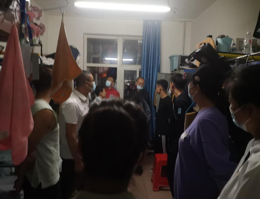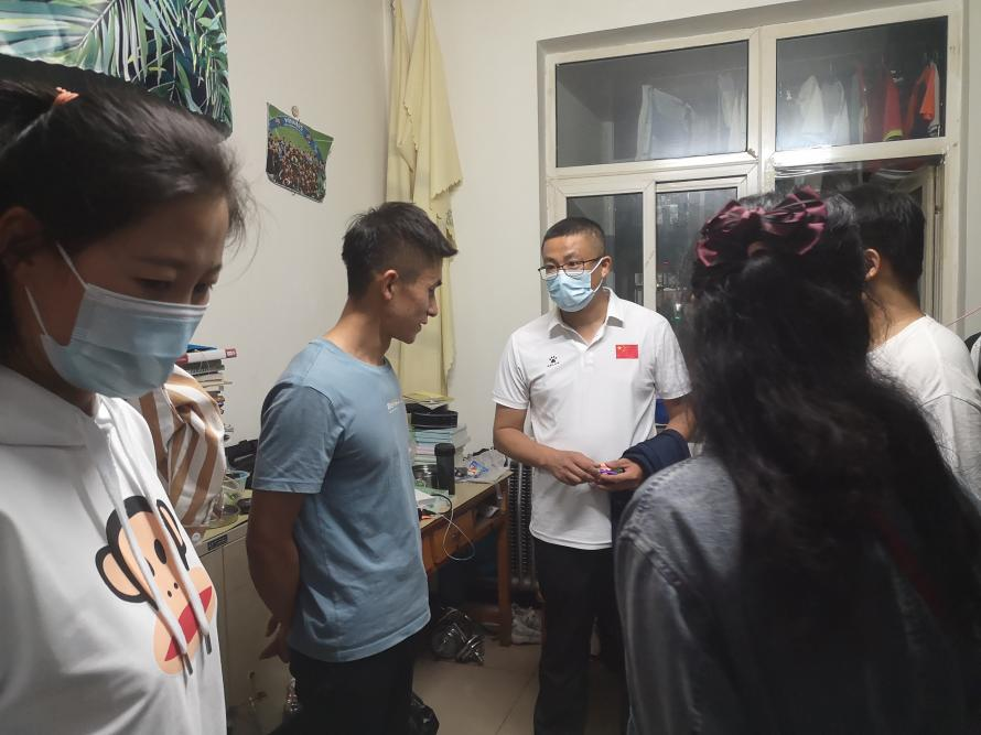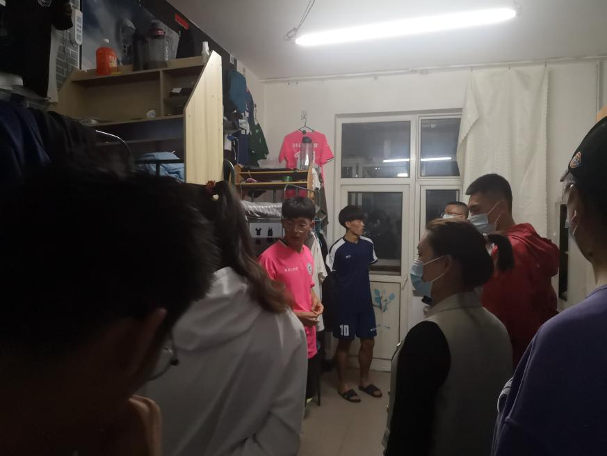 2021年9月16日晚8点,betway西汉姆联官网党总支书记苗凯、党总支副书记武淑琴、副院长张新民、学工办主任赵鑫、辅导员王梦茹及各年级班主任老师对体育教育专业学生宿舍环境及卫生情况进行检查。