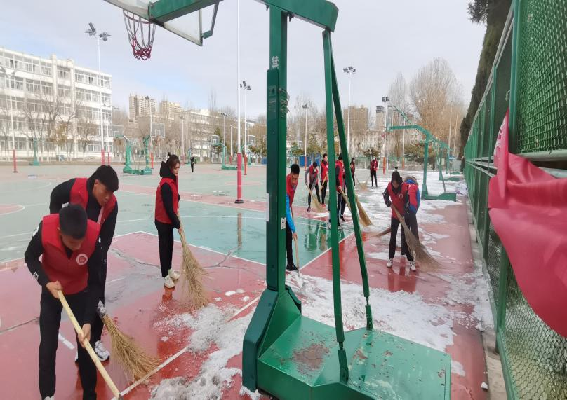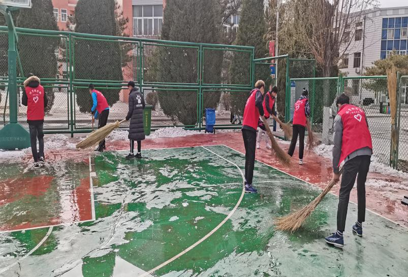 2021年11月9日,为保证师生上课安全,betway西汉姆联官网组织学生会全体成员对室外篮球场地进行除雪。清扫当中,为了推进工作进度,以小组为单位,分片划区、分工合作用铁锹铲、扫帚扫,篮球场地很快清扫完成,切实消除了由于下雪结冰带来的安全隐患。