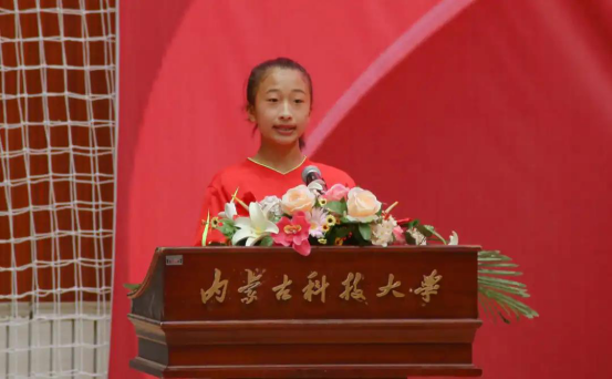 活动中,包钢二十六小的女足队员张檬丹上台发言,以任桂辛为榜样,表达了对于足球的热爱之情,展示了少年勇敢逐梦、期待为祖国争光的伟大愿望。