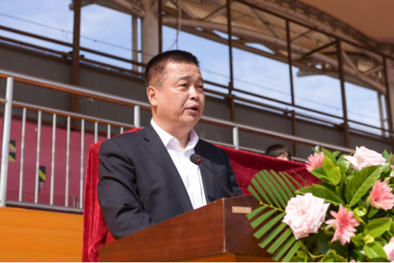 伴随着庄严的国歌,国旗护卫队护送五星红旗整齐入场,开学典礼的序幕正式拉开。