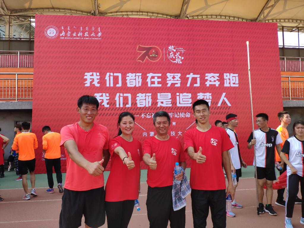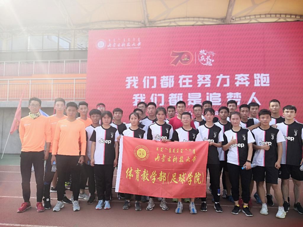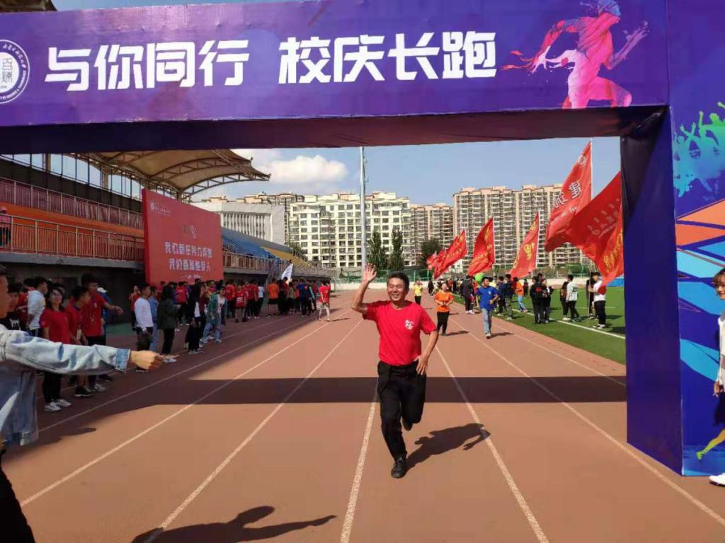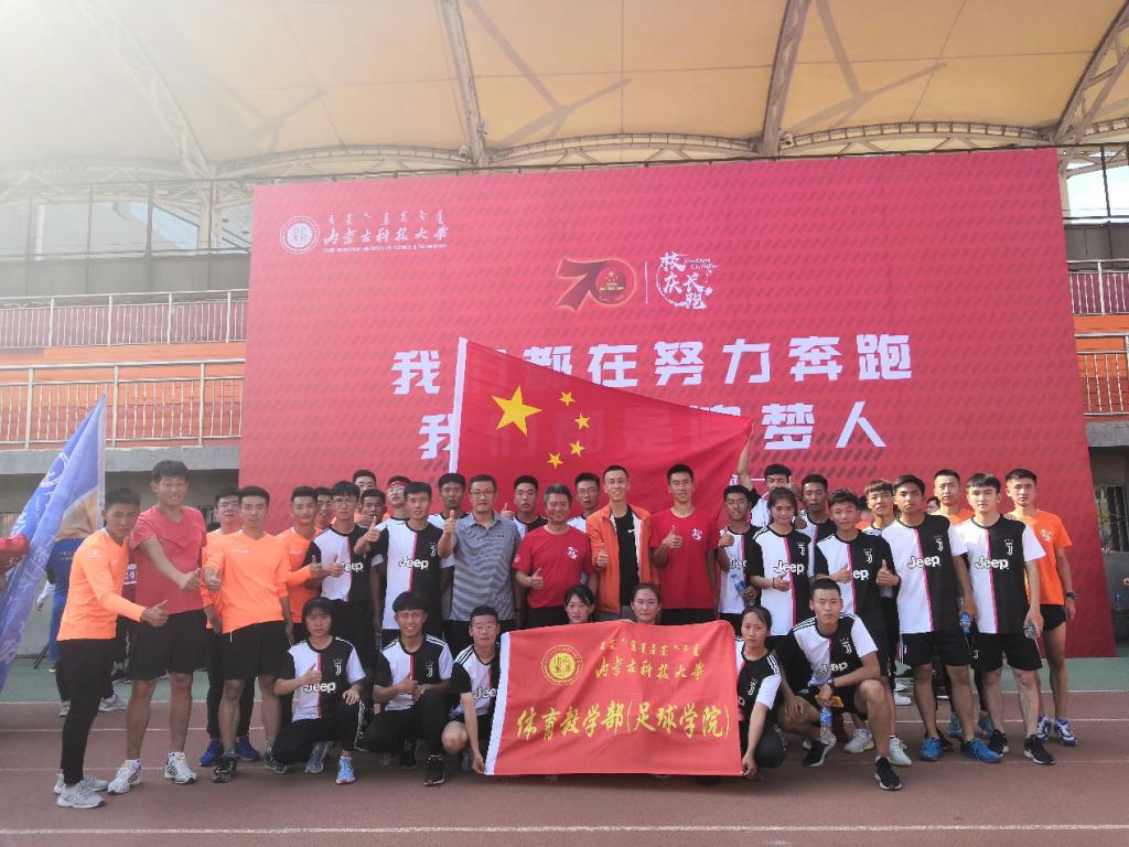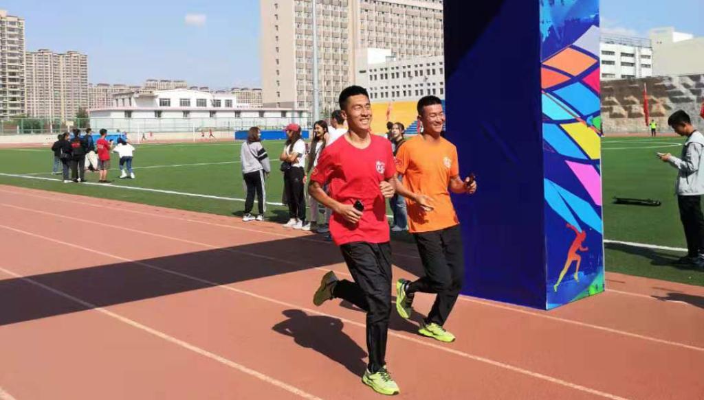 2019年9月26日13:30,“与你同行”校庆长跑在我校田径场举行。betway西汉姆联官网(足球学院)党总支书记、主任(院长)田瑞峰;副主任(副院长)苗凯;教工党员杨文亮、王熠、杨乐、闫智惠等教师以及体育教育专业学生共同组成运动跑团参加了此次活动。