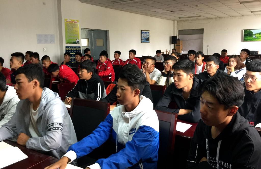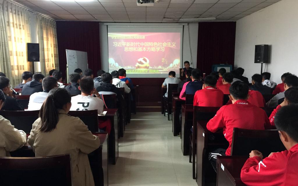 为贯彻落实党的十九大精神,深刻领会习近平新时代中国特色社会主义思想和基本方略,切实提高广大青年党员、团员的政治素养, 9月14日上午8:30,betway西汉姆联官网(足球学院)党总支书记、院长田瑞峰在体育馆二楼多媒体教室作了关于“习近平新时代中国特色社会主义思想和基本方略”的专题学习讲座,体育教育专业(足球方向)学生认真聆听,积极学习。