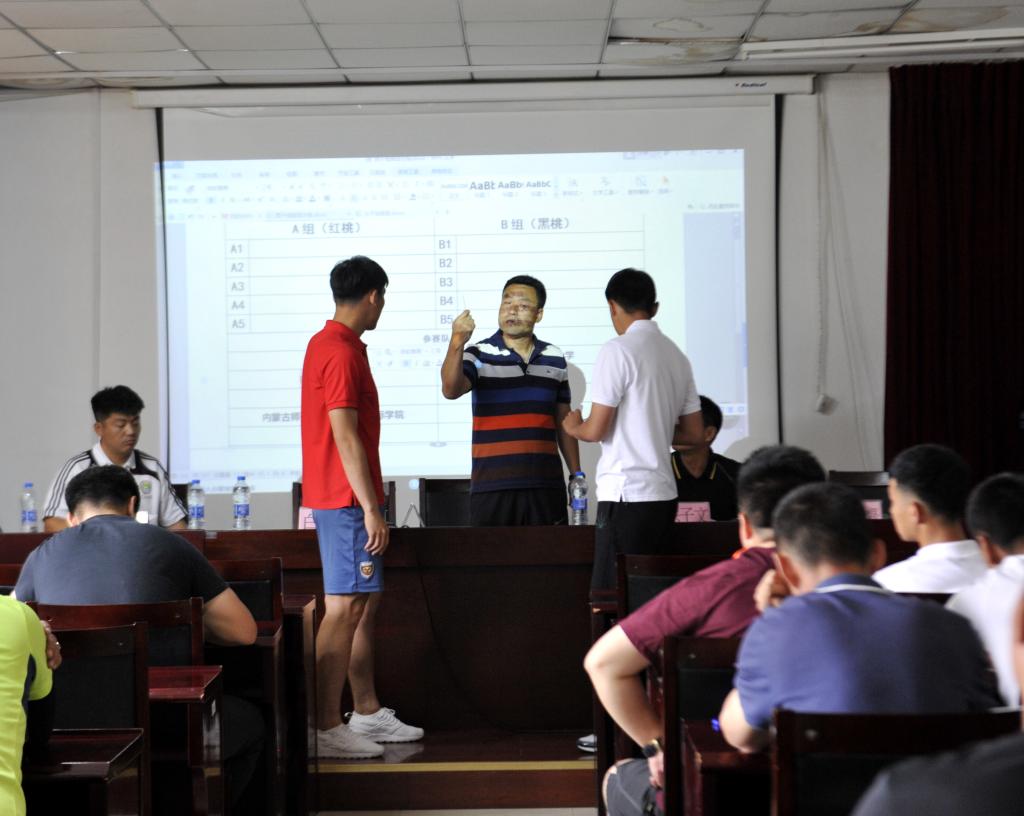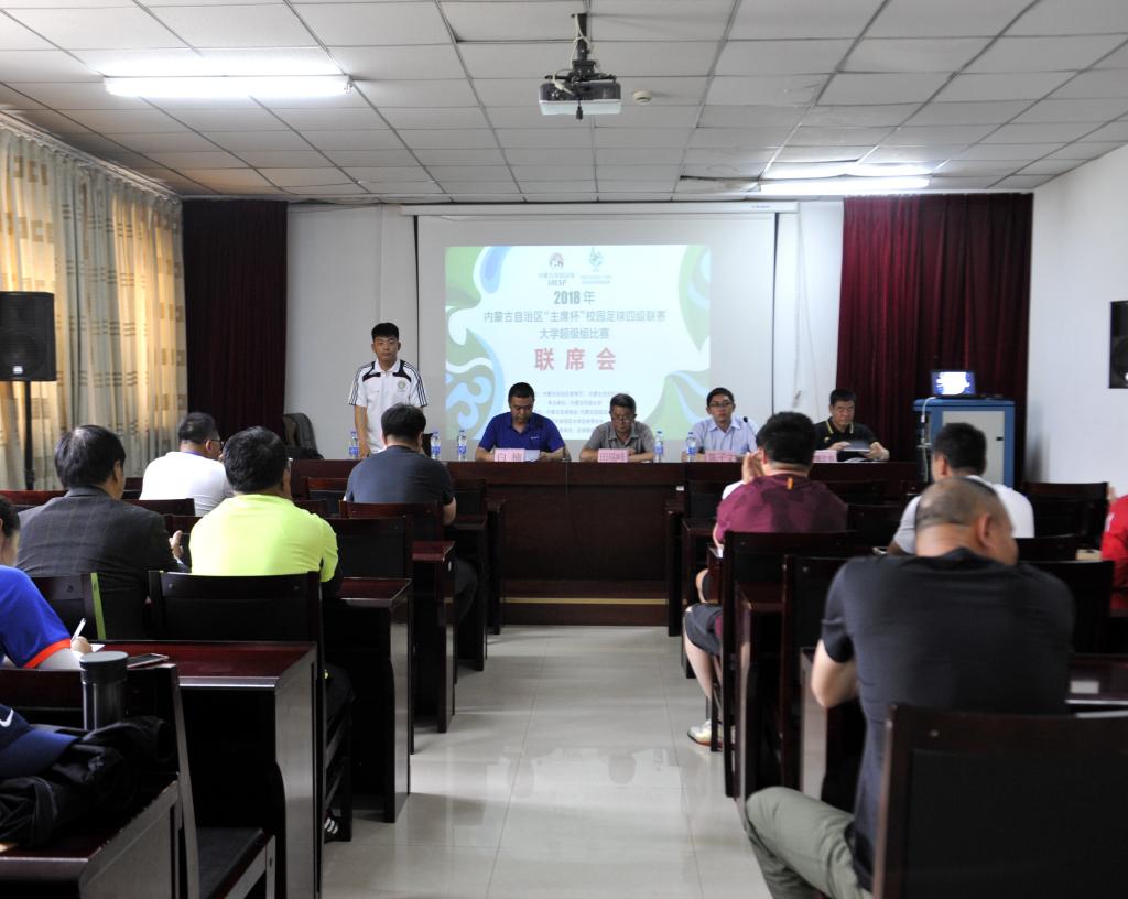 6月1日下午16:00,2018年内蒙古自治区“主席杯”校园足球四级联赛大学生超级组领队、教练员、裁判员联席会在内科大体育馆二楼会议室举行。内蒙古校园足球联合会秘书长、betway西汉姆联官网betway西汉姆联官网(足球学院)主任田瑞峰,内蒙古校园足球办公室竞赛负责人陈子文,比赛监督孙志华、裁判长贺春亮参加会议。联席会由betway西汉姆联官网betway西汉姆联官网(足球学院)副主任白楠主持。