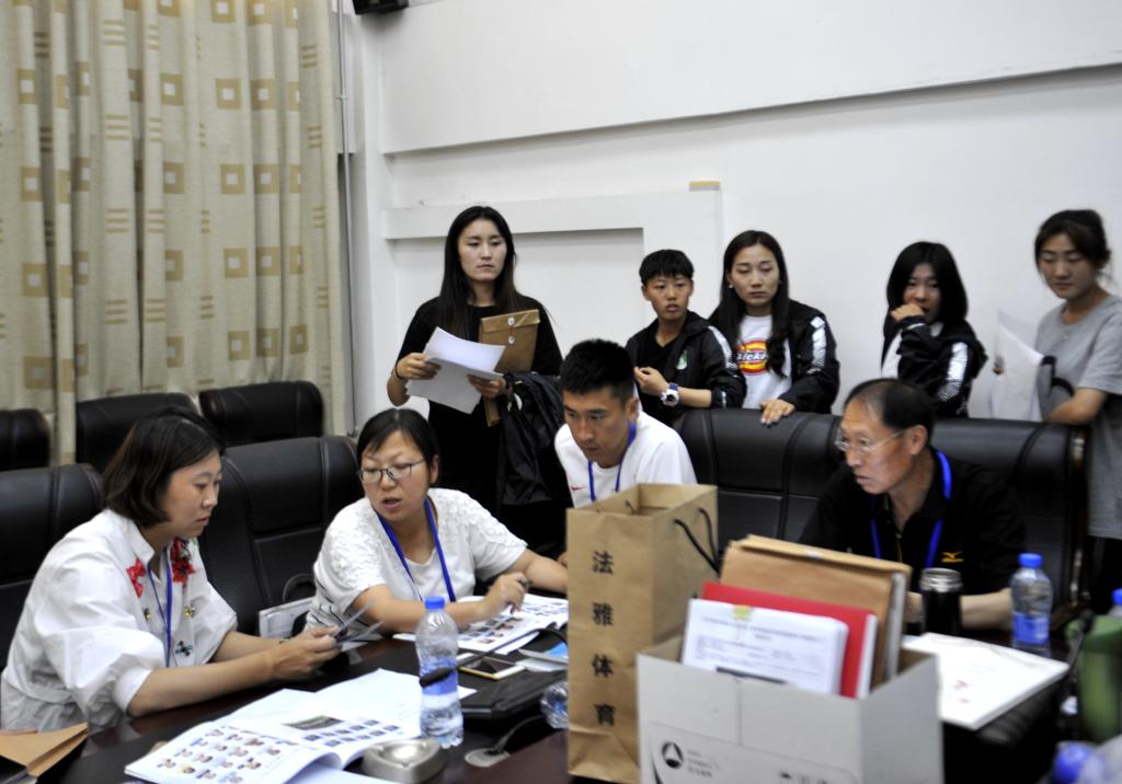 6月1日,参赛队员资格审查工作在betway西汉姆联官网体育馆二楼会议室举行。