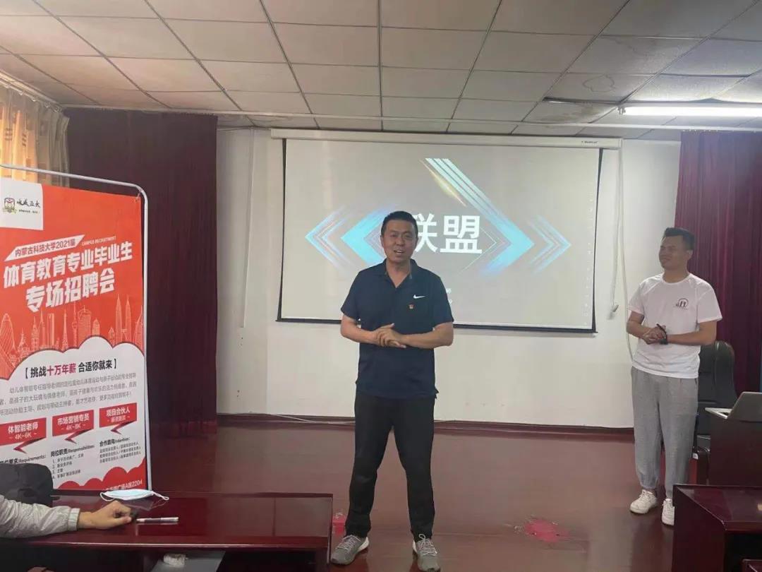 6月9日下午16:30,体育教育专业2021届毕业生专场招聘会在体育馆二楼多媒体教室举办。本次专场招聘会邀请了企业内蒙古卓之冉教育科技有限公司,体育教育专业17、18、19级学生参会。betway西汉姆联官网党总支书记苗凯、主任(院长)白楠、系主任王丰、2016级班主任刘超参会。