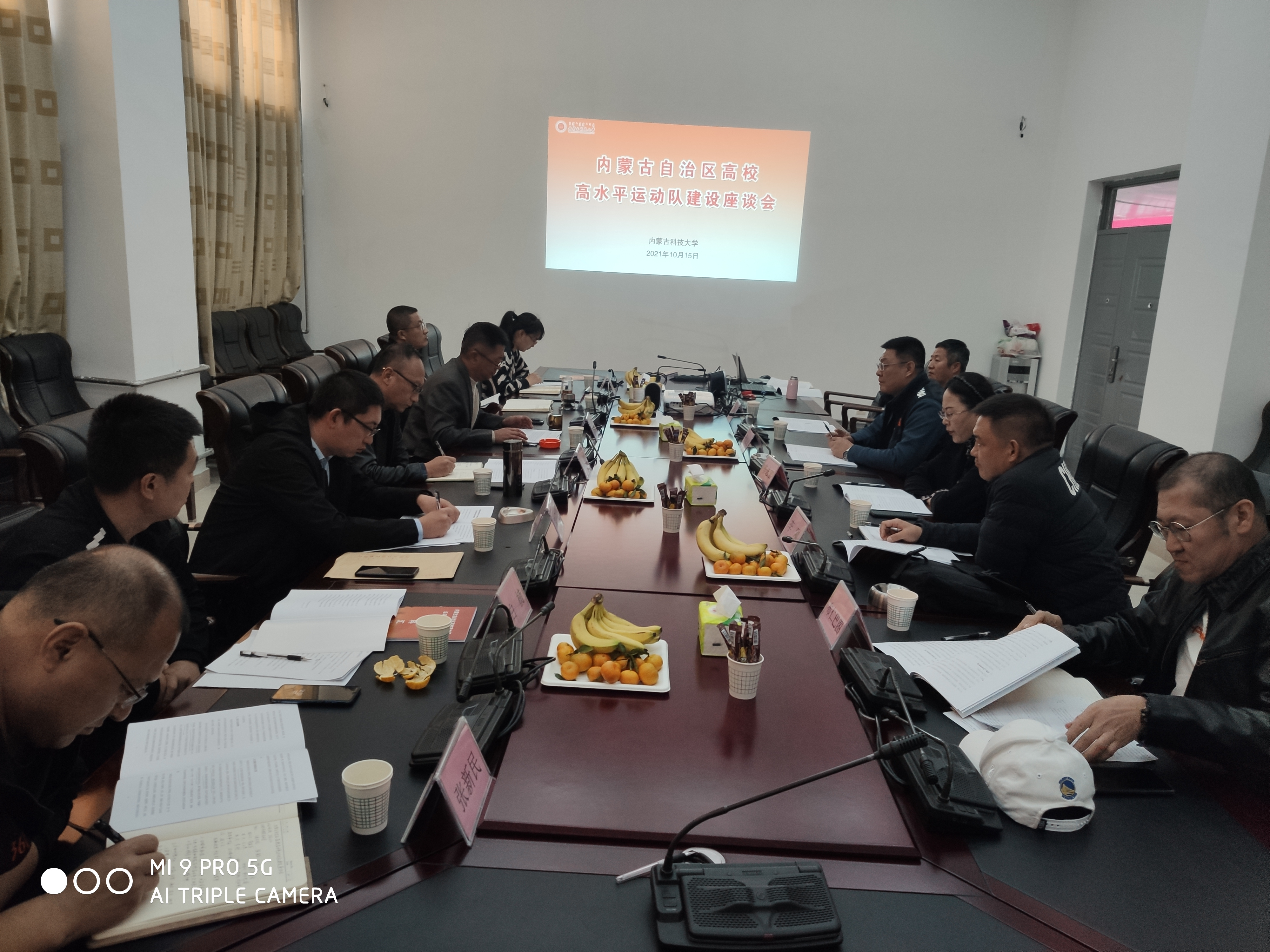 10月15日下午,内蒙古自治区高校高水平运动队建设座谈会在betway西汉姆联官网隆重召开。内蒙古自治区教育厅体育卫生艺术与劳动教育处处长张韬、内蒙古自治区教育厅体育卫生艺术与劳动教育处学校体育专干陈子文出席会议,内蒙古大学betway西汉姆联官网副院长王文杰、内蒙古工业大学体育教育部主任荀盛龙、内蒙古农业大学betway西汉姆联官网副主任李刚、包头师范学院betway西汉姆联官网院长车志宏、内蒙古师范大学布仁巴图以及betway西汉姆联官网教授田瑞峰、党总支书记苗凯、主任白楠、党总支副书记武淑琴、副主任张新民参加座谈会,陈子文主持会议。
