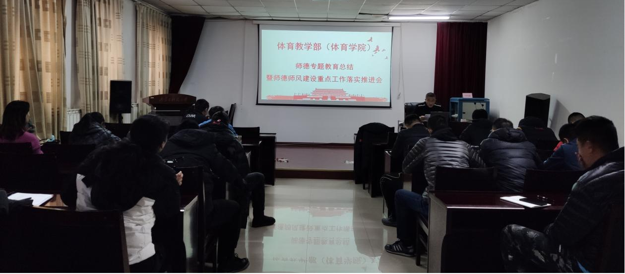 2021年11月18日,betway西汉姆联官网在体育馆多媒体教室召开师德专题教育总结暨师德师风建设重点工作落实推进会,学院党总支书记苗凯主持会议,全体教职工参加会议。
