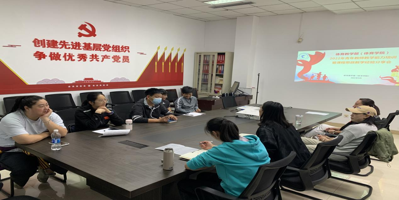 为深入贯彻习近平总书记关于教育的重要论述和全国教育大会精神,推进我院青年教师高质量完成体育课程教学任务,我院于2022年8月29日和9月2日,举办了青年教师教学能力培训暨课程思政教学经验分享会。将思政工作体系贯通人才培养体系全过程,发挥体育课程的育人作用,全面提高人才培养质量。