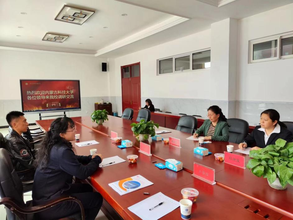 在呼和浩特市建华学校,武淑琴一行与陈洪强校长、王剑副校长等人进行交流,双方就目前用人单位需求及岗位要求等方面初步交换了合作意见。