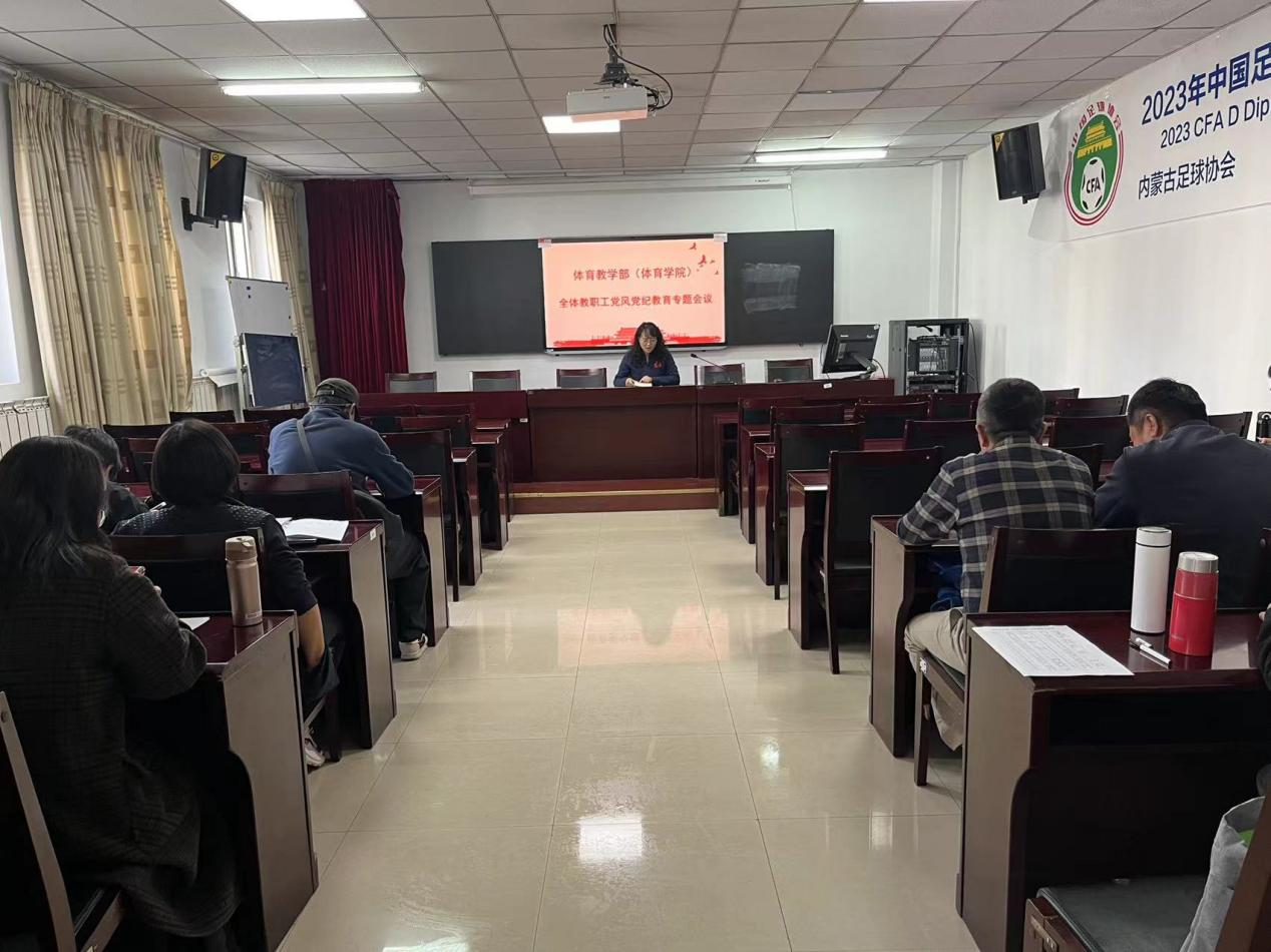 2023年11月2日,betway西汉姆联官网在体育馆二楼多媒体教室组织召开全体教职工党风党纪教育专题会议,会议由学院党委副书记武淑琴主持。