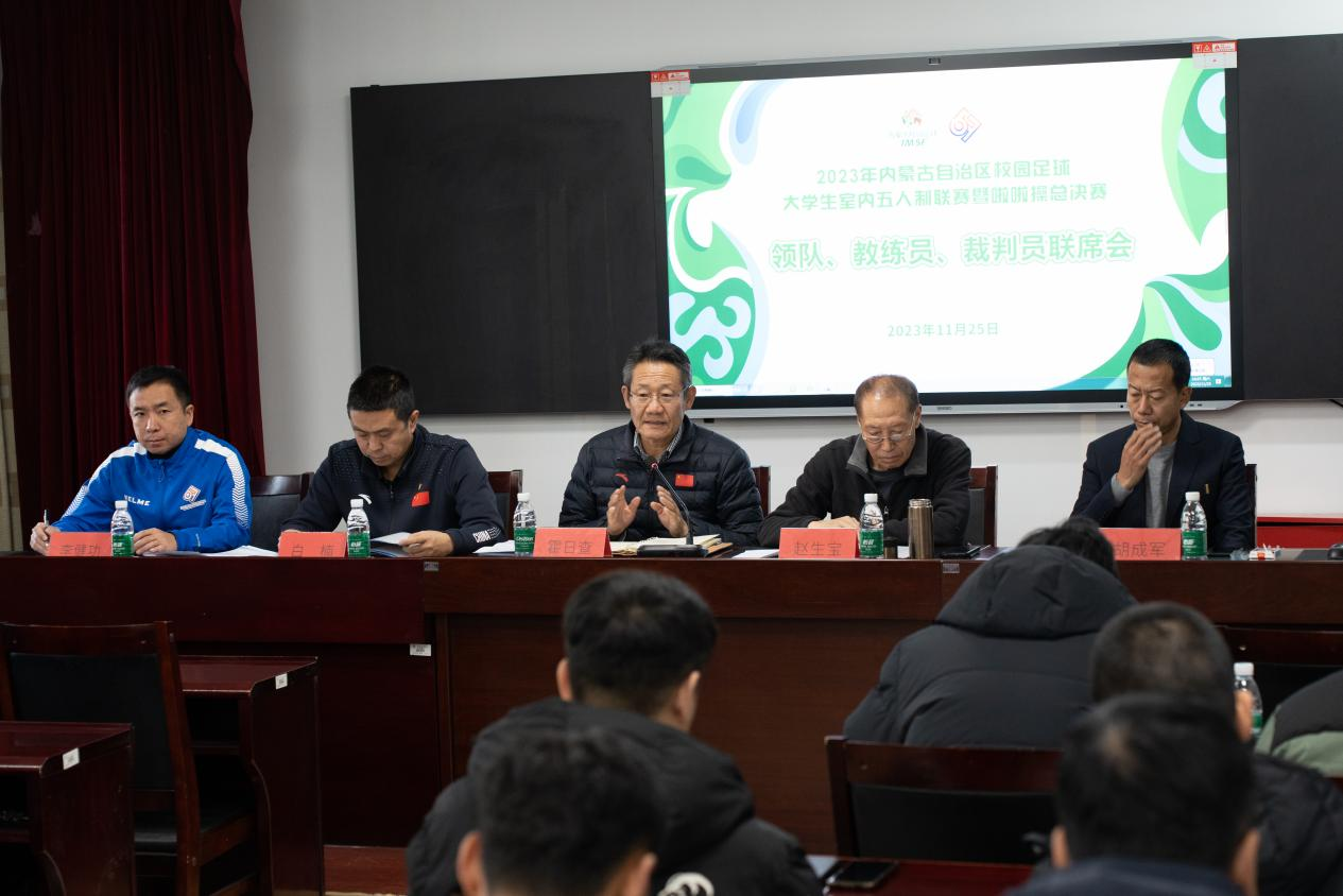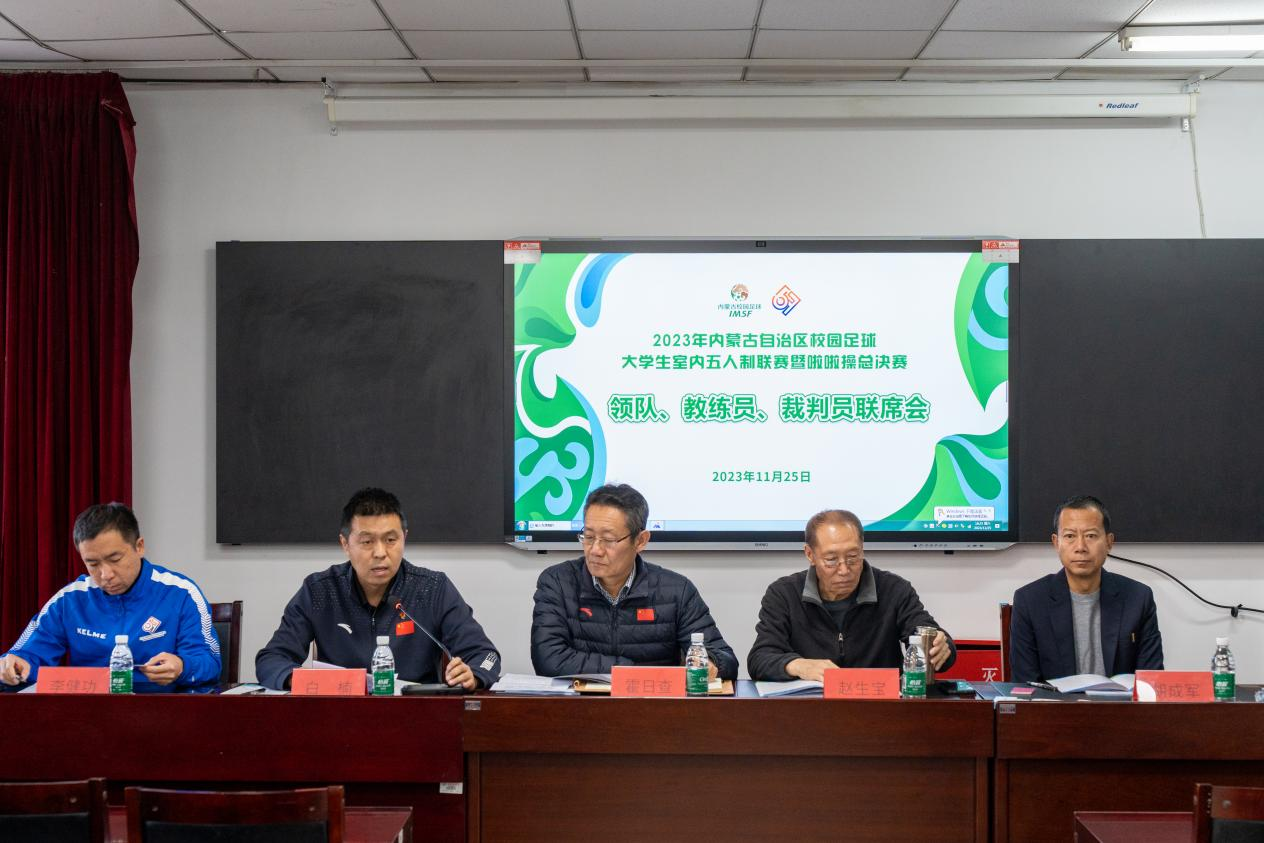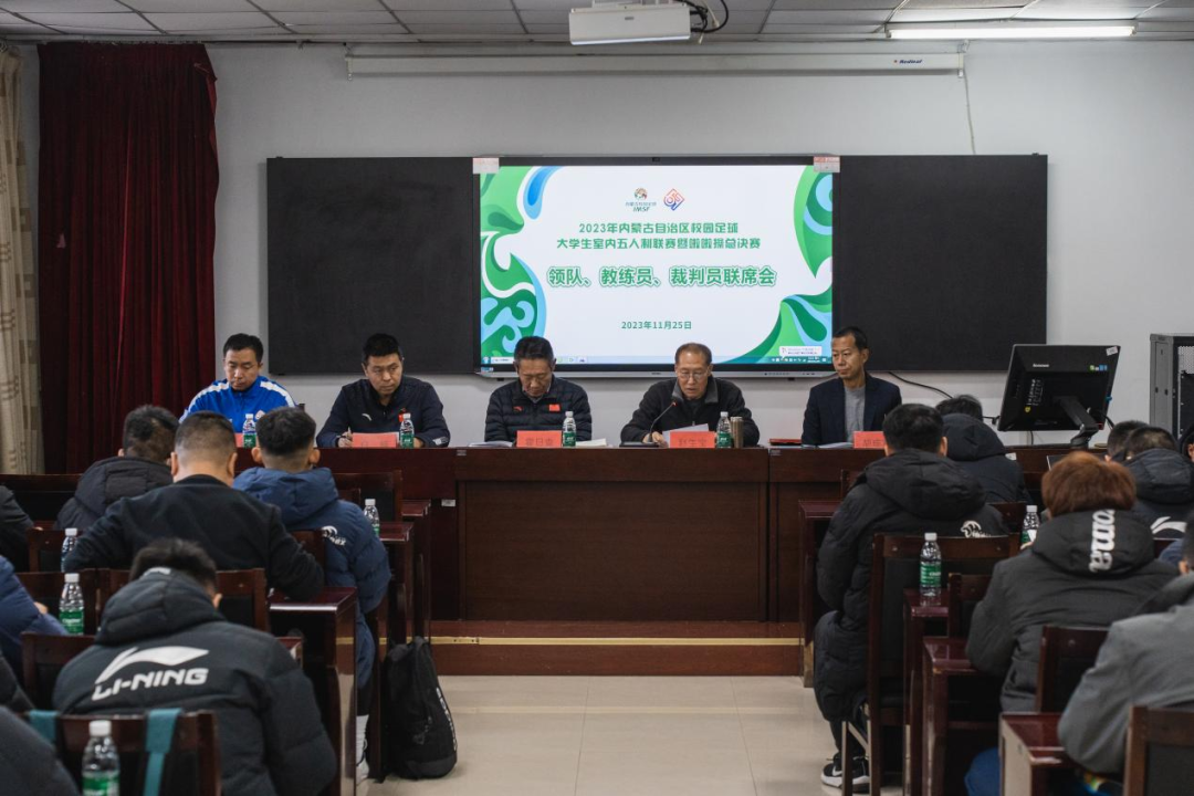 2023年11月25日,2023年内蒙古自治区校园足球大学生室内五人制联赛暨啦啦操总决赛赛前联席会在betway西汉姆联官网体育馆召开。内蒙古学生体育协会会长霍日查,内蒙古学生体育协会副会长赵生宝,betway西汉姆联官网主任(院长)白楠,高职高专组室内五人制足球比赛监督胡成军、高职高专组室内五人制足球比赛裁判长、本科组比赛监督李健功、各参赛队伍领队、教练参会,会议由赵生宝主持。