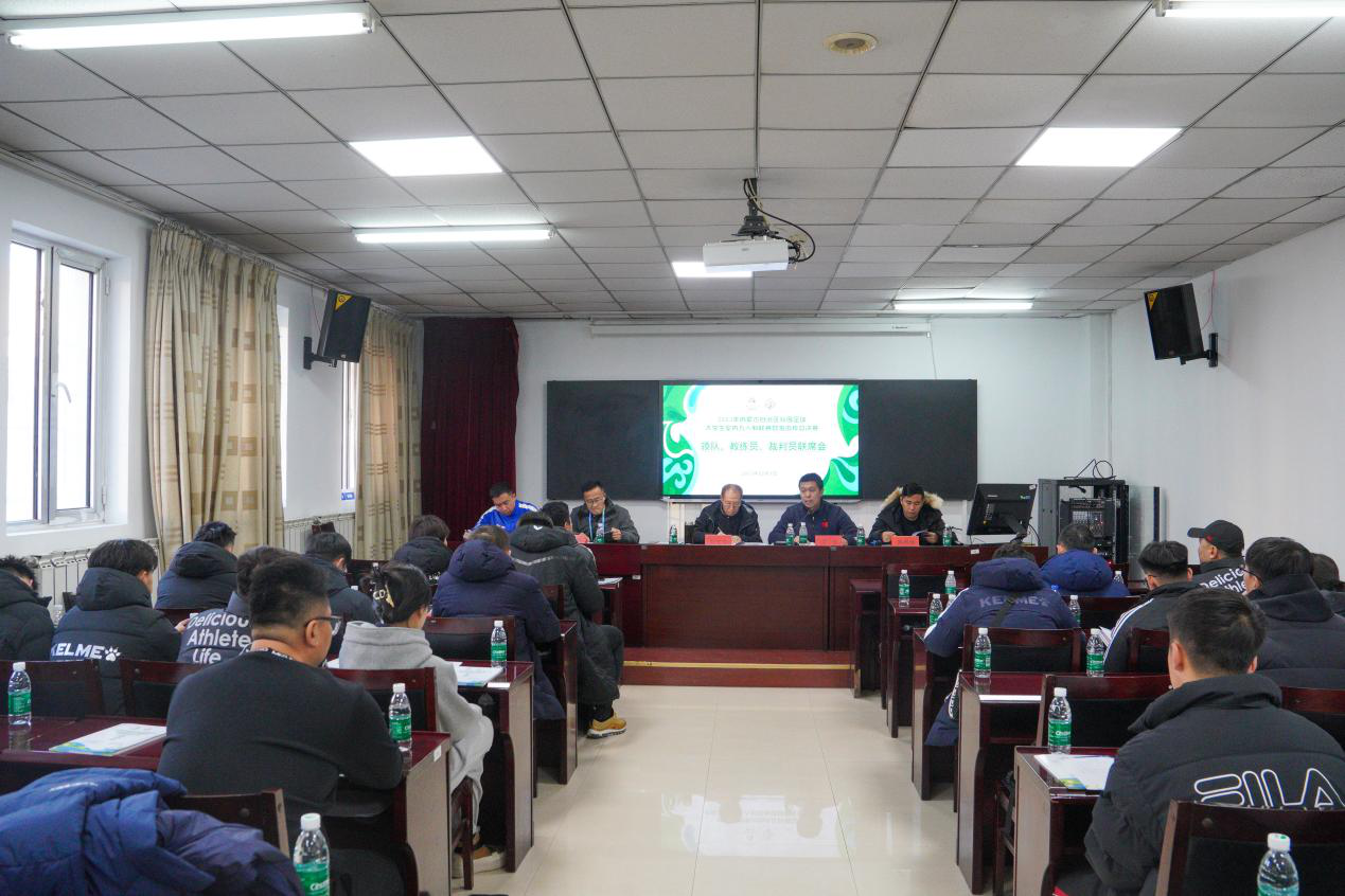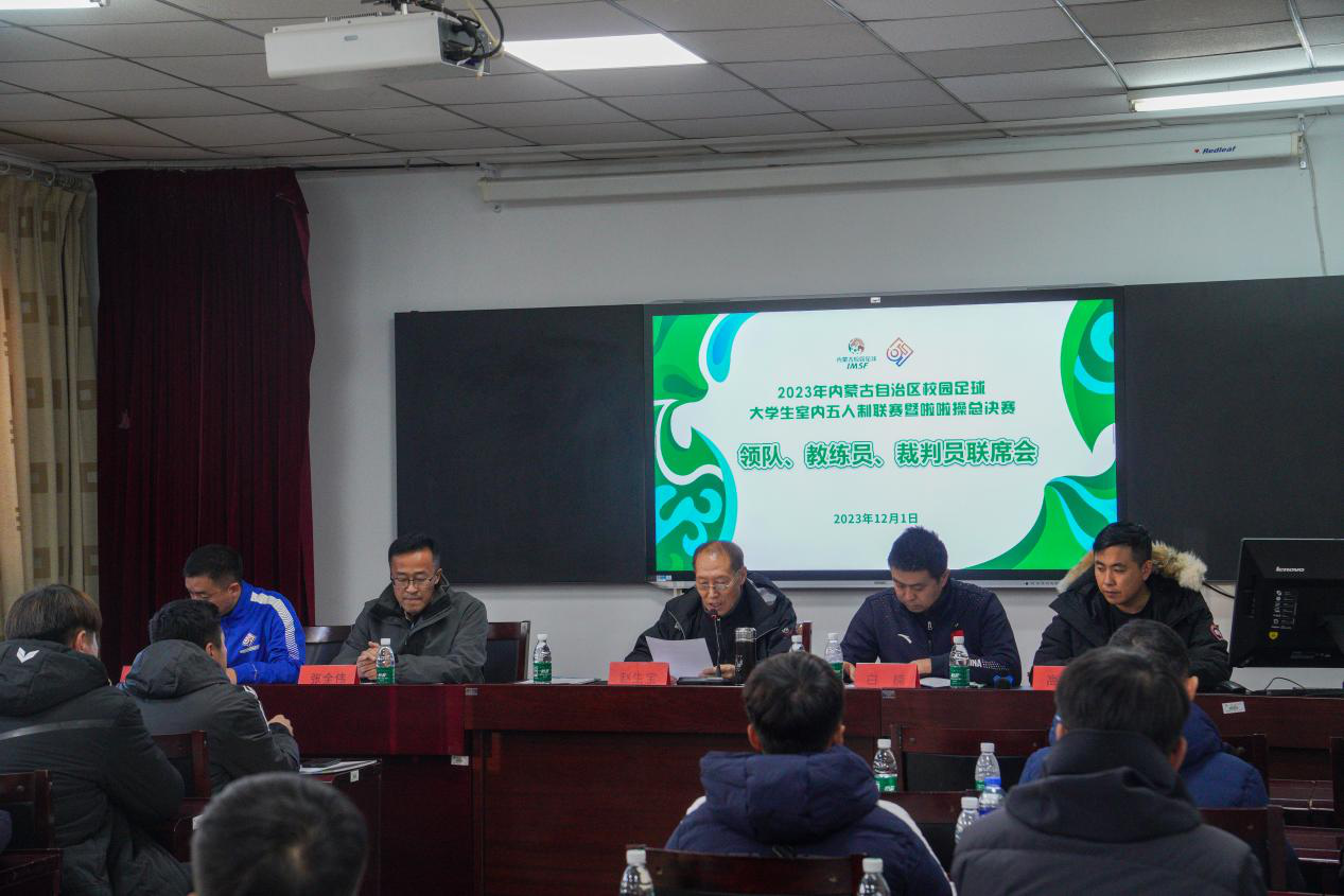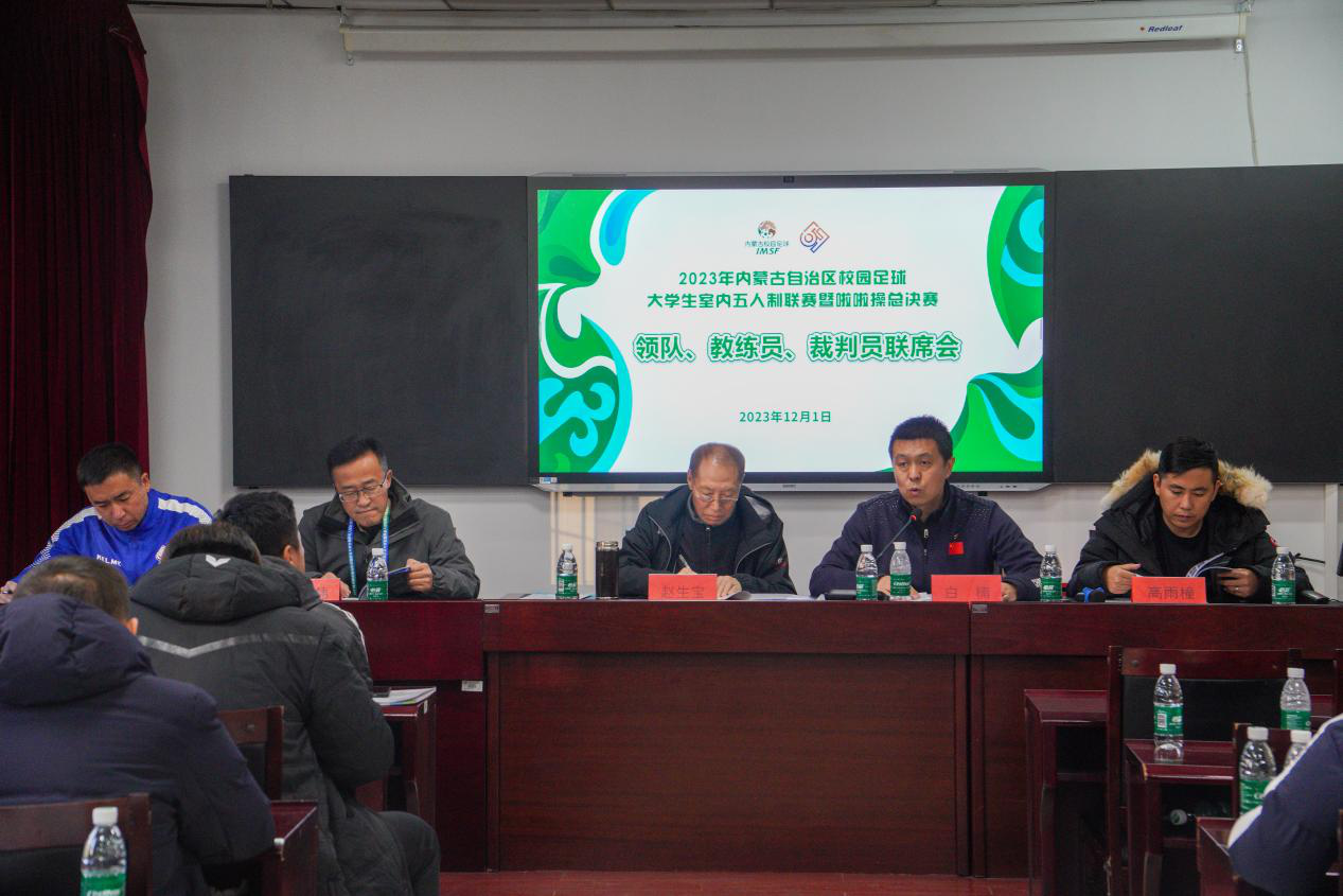 2023年12月1日,2023年内蒙古自治区校园足球大学生室内五人制联赛暨啦啦操总决赛本科组联赛及啦啦操总决赛赛前联席会在betway西汉姆联官网体育馆召开。内蒙古学生体育协会副会长赵生宝,betway西汉姆联官网主任(院长)白楠,本科组比赛监督李健功,本科组室内五人制足球比赛裁判长张全伟,啦啦操比赛裁判长高雨橦,各参赛队伍领队、教练参会,会议由赵生宝主持。