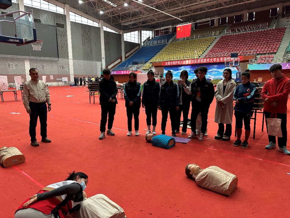 为深入实施《健康中国行动(2019—2030年)》,贯彻落实《教育部等五部门关于全面加强和改进新时代学校卫生与健康教育工作的意见》,2024年10月24日,包头市昆区红十字会“救在身边·校园守护”红十字救护员培训在betway西汉姆联官网举办专场学习。学院党委书记韩冰、党委副书记唐国桥、副院长张新民、副院长杜晓炜、全体教职工和2021级体育教育专业学生参加了学习,特邀昆区红十字会业务股股长刘艳君,昆区红十字会优秀师资李玥璇、李健功、其格其三位讲师,为师生提供红十字救护员取证培训。