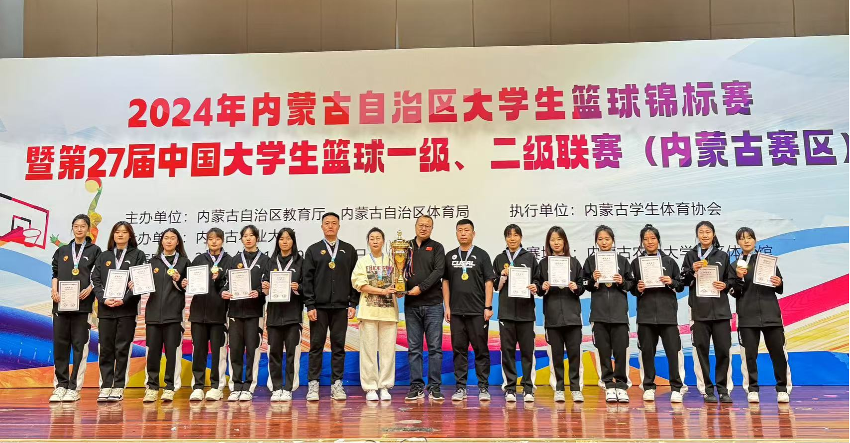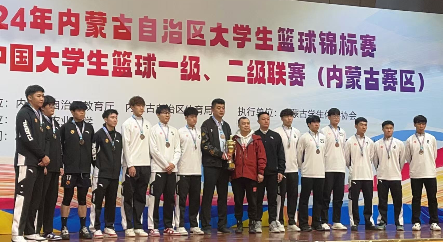 11月9日-13日,2024年自治区大学生篮球锦标赛暨第27届中国大学生篮球一级联赛在内蒙古农业大学举行。我校女子篮球队获得超级组冠军,男子篮球队获得超级组第三名。