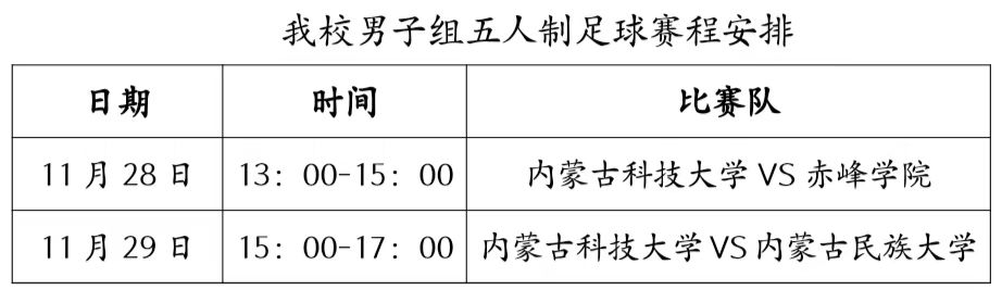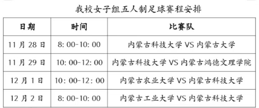 此次比赛我校派出男子组五人制足球、女子组五人制足球、啦啦操3支队伍参赛。11月28日8:00我校女子足球队将迎来首战,祝愿女足姑娘们在比赛中展现出良好的竞技水平,取得理想的成绩。