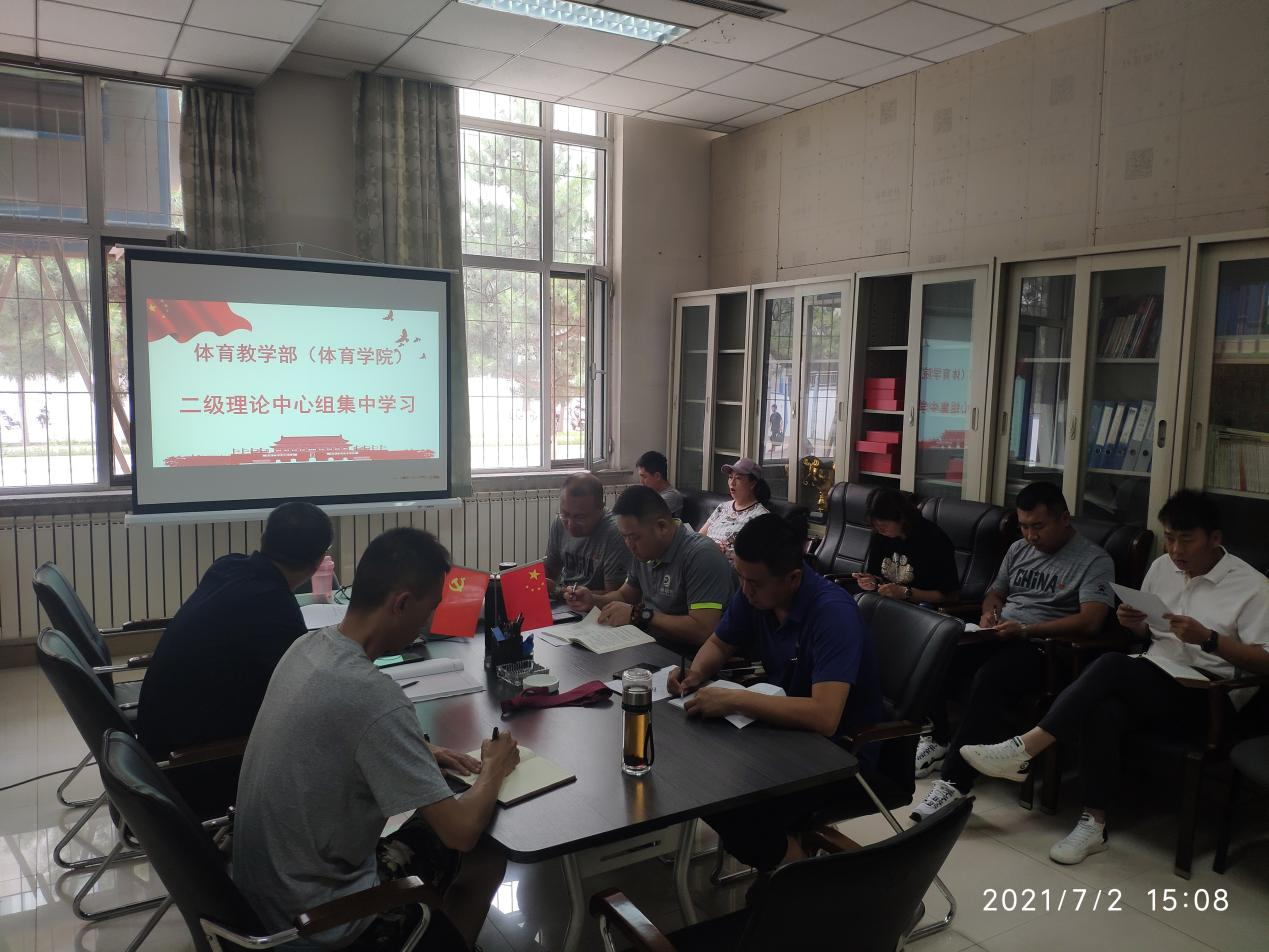 7月2日,betway西汉姆联官网党总支理论中心组在体育馆113会议室开展集中学习。会上,认真学习了习近平总书记在庆祝中国共产党成立100周年大会上的重要讲话精神,并结合工作实际,进行了研讨发言。