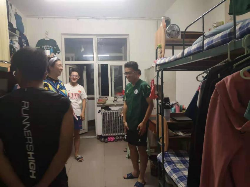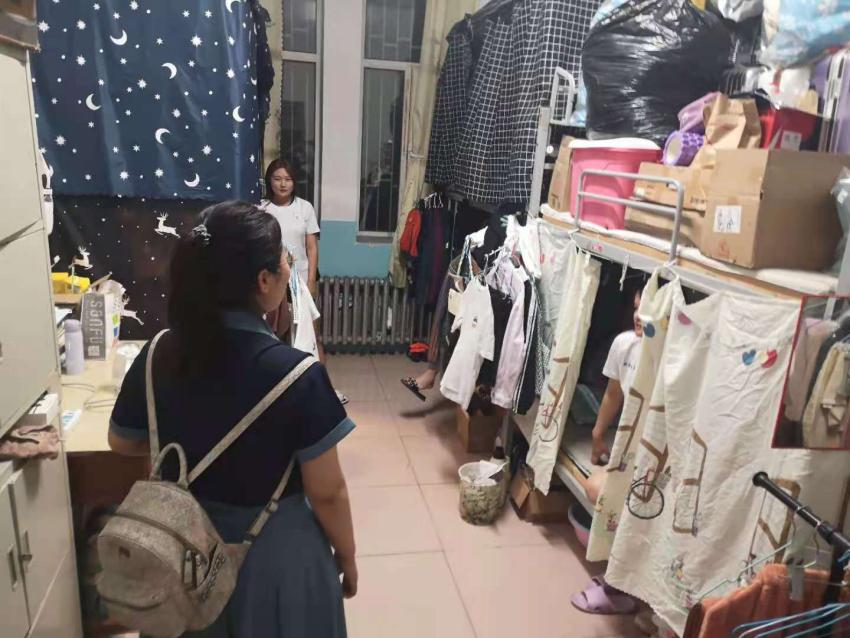 2021年6月30日betway西汉姆联官网学工办主任赵鑫、2018级班主任闫智惠、2019级班主任杨乐、辅导员王梦茹对体育教育专业宿舍文化、宿舍卫生、用电安全、毕业生安全教育等方面进行走访。