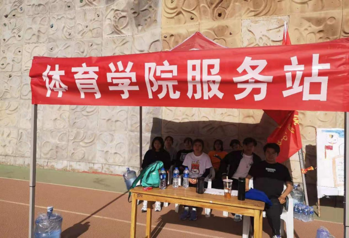 本次军训得到了学院领导的高度重视,为确保学生军训工作的顺利进行,学院及时招募志愿者,设置服务站,为在烈日下军训的同学们提供便捷服务。